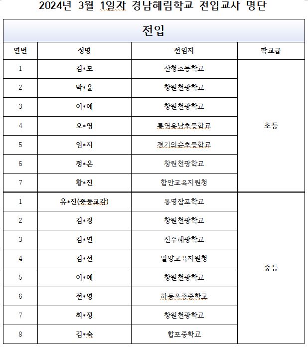 2. 대상: 2024학년도 경남혜림학교로 인사발령 된 초.중등 교원, 특수교육실무원 및 합격된 계약제 교원, 복직 교원