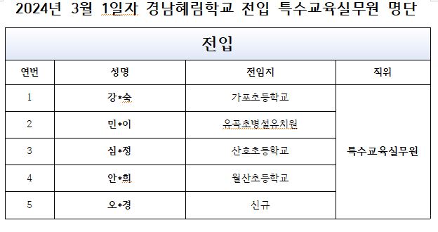 *전입 특수교육실무원선생님께서는 반배정 추첨 및 간담회가 2024.2.16.(금) 15:30~16:30 있으니